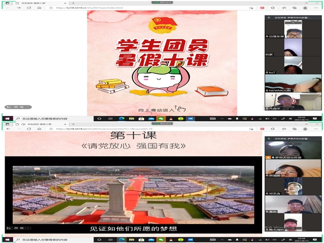 为加强爱国主义教育,促进青年学子知史爱党、知史爱国,八月中下旬,政法学院各班级团支部组织全体团员在线学习了“暑假十课”系列团课视频。