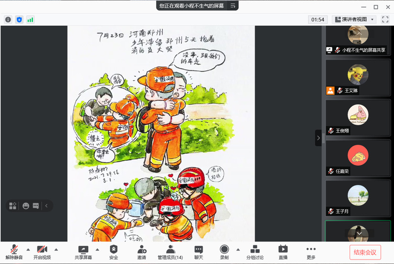 更好的把灾情当教材,引领广大团员与祖国共成长,8月底至9月初,艺术设计学院以团支部为单位陆续开展了“让青春在防汛抗疫中成长”线上主题团日活动。学院全体团员青年参与了本次活动。