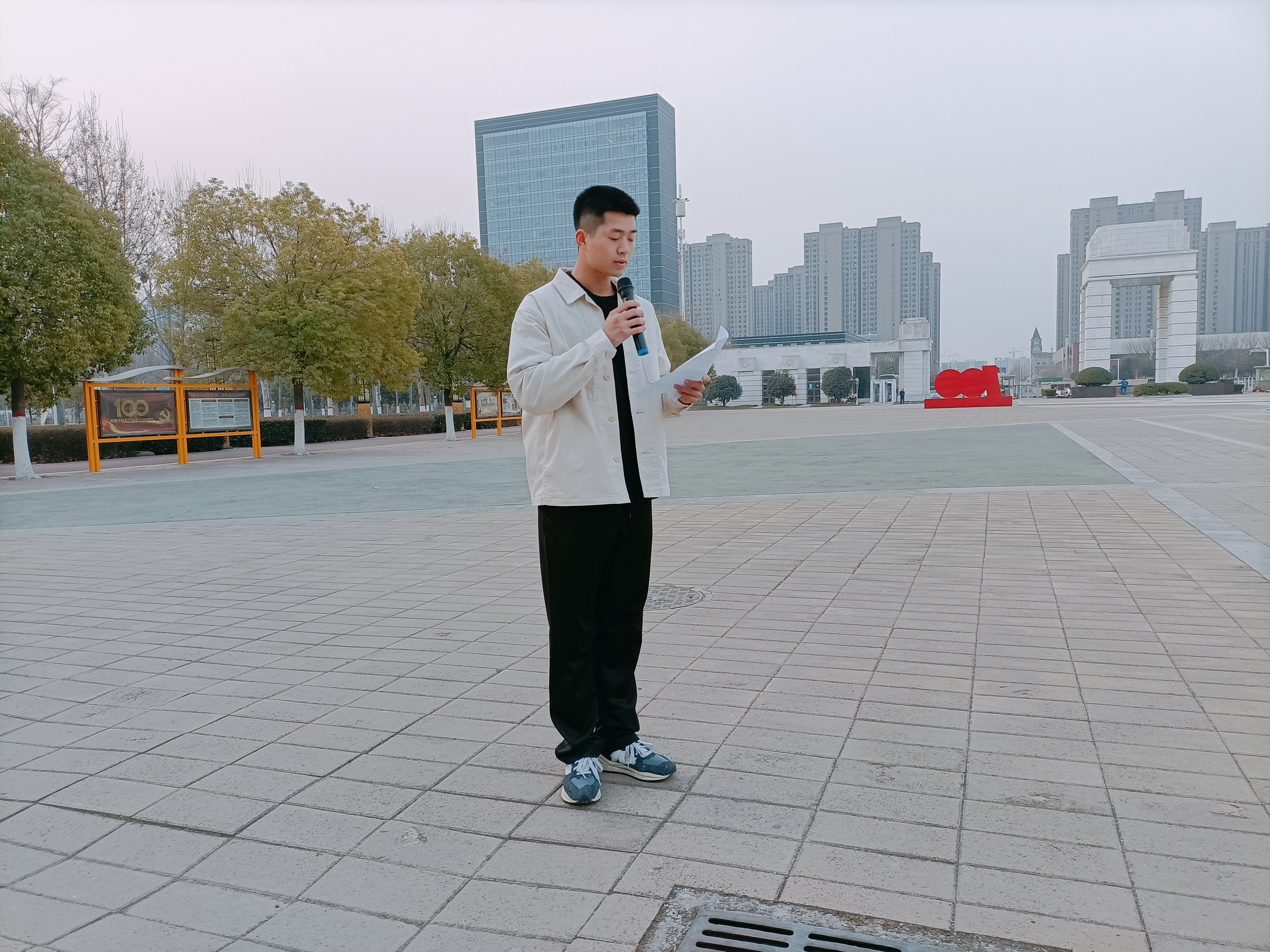 升旗仪式开始后,迎着朝阳,国旗护卫队迈着矫健的步伐,护送着鲜艳的五星红旗入场。伴随着庄严的国歌声,五星红旗冉冉升起,全体师生面向国旗肃立致礼。升旗仪式上,在迎风飘扬的五星红旗下,体育学院史家铭同学代表全体团员青年作国旗下演讲。他演讲的题目是“弘扬雷锋精神,争做时代新人”。演讲中,史家铭鼓励同学们将雷锋精神落实到日常学习生活中,希望大家踊跃参加志愿服务、公益活动等社会实践和志愿服务活动,帮助更多需要帮助的人,用实际行动践行初心使命,在平凡中彰显雷锋精神,让雷锋精神在广大团员青年心中深深扎根。