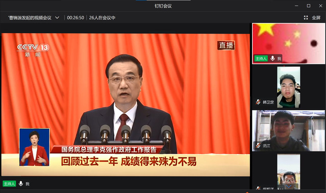 团课开始前,各班团支书在网上组织同学们关注两会动态、聚焦两会热点,并就政府工作报告进行热议。团课中,团支书为同学们详细介绍了“两会”召开的时间、讨论的主题以及开展的意义。通过播放相关视频,同学们学习探讨了“两会”中的教育及创业问题,并针对“两会”中的关键词“健康中国”展开了激烈讨论。同学们踊跃发言,畅谈自己对两会精神的理解,并纷纷表示将积极关注时政,不断提升自身理论素养,学习“两会”精神,坚定理想信念,增强学习动力,扛起新使命,展现新担当。