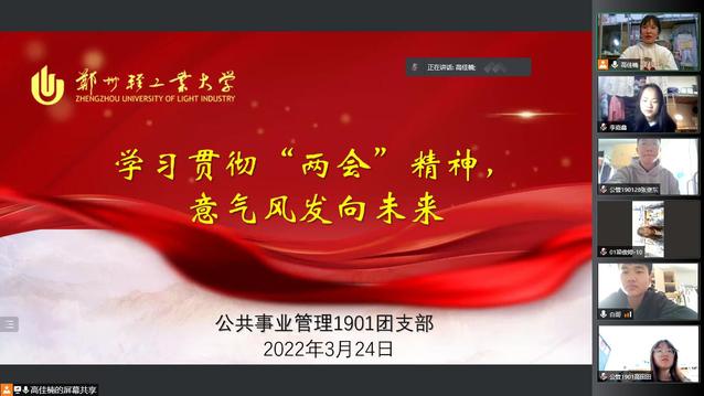 各班级团支部组织收看了“两会”开幕式直播,深入学习了李克强总理政府工作报告内容和习近平总书记在“两会”上的重要讲话精神。聚焦两会热点,同学们通过主题分享、报告解读、图片展示、研讨交流等多种形式,学习了解2022年全国两会召开的背景、主要概况、重点议题等,主动了解国家重大决策部署,统一思想、凝聚力量,领悟新时期青年一代面临的重大战略机遇和新的任务要求。同学们展开热烈讨论,纷纷表示,作为新时代青年,应认真学习贯彻“两会”精神,关注国家发展大势,把个人理想追求融入国家和民族事业中,在实现中国梦的实践中书写精彩人生。