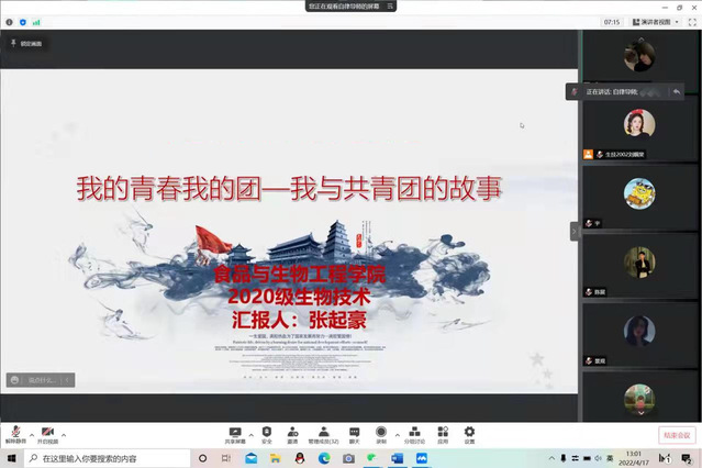 为深入学习党领导下的中国青年运动史,进一步增强团员青年的使命感、责任感和荣誉感,提升团组织的凝聚力,近日,食品与生物工程学院组织各团支部开展“我的青春我的团—我与共青团的故事”系列主题团日活动。