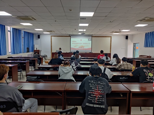 4月25日,物理与电子工程学院在四教楼503会议室开展“树立总体国家安全观,喜迎党的二十大”主题团课,本次团课由学院团委书记周芳华老师主讲,学院团校培训班学员参加了此次团课学习。