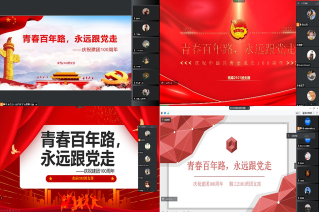 为庆祝中国共产主义青年团成立100周年,引导团员青年弘扬五四精神,厚植爱党爱国情怀,凝聚青春奋进力量,5月4日,食品与生物工程学院组织各团支部线上开展“青春百年路,永远跟党走”庆祝建团100周年主题团日活动。