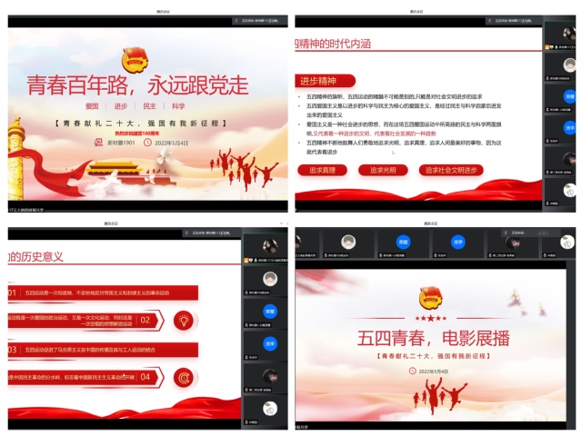 结合疫情防控要求,各班团支部积极创新活动形式,以主题宣讲、纪念观影等形式共同庆祝建团百年。活动期间,同学们在各团支书的带领下对康有为、梁启超等知识分子再一次进行了深入了解,通过他们的事迹、经历、思想和精神特征各个方面了解五四运动的时代背景和精神内核。随后,各团支部观看关于中国共青团百年艰苦奋斗史的视频,通过学习和交流,系统了解中国共产主义青年团的发展史,深刻体会团员青年在中国革命道路上发挥的重大作用,深切感受到了根植于内心的责任感以及肩负起中华民族伟大复兴的使命感。