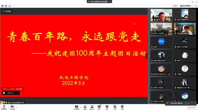 为深入学习贯彻习近平总书记考察中国人民大学重要讲话精神,营造喜迎党的二十大的青春氛围,引领凝聚广大青年全面认知党领导青年运动的光辉历程,5月4日,机电工程学院组织各团支部开展“青春百年路,永远跟党走”主题团日活动,学院全体团员青年参与了本次活动。