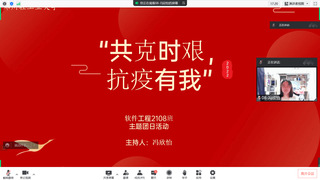 为深入贯彻落实习近平总书记关于疫情防控工作重要讲话和指示精神,引导团员青年深刻认识到每个人都是抗击疫情主体人、责任人,积极配合校疫情防控工作的开展。结合近期疫情防控形势和管理需要,软件学院各团支部线上陆续开展了以“共克时艰,抗疫有我”为主题的疫情防控主题团日活动。