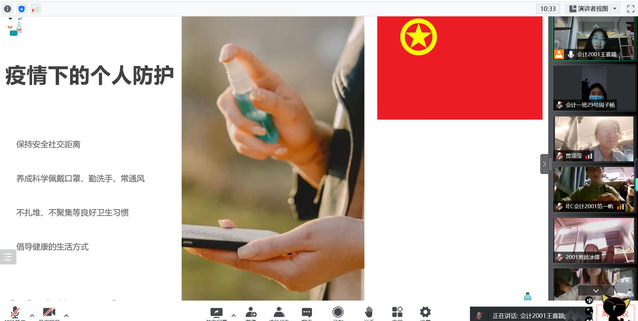 活动中,同学们在班级团支书的带领下认真学习了学校最新疫情防控的文件精神,学习了“翻墙”进出学校感染新冠肺炎、外卖快递配送员感染新冠肺炎以及未按规定时间参加核酸检测的警示案例,通过学习同学们充分认识到当前疫情防控的复杂性和严峻性,进一步增强了遵守学校疫情防控要求的行动自觉。活动中,同学们还交流学习了疫情防控科普小知识、疫情期间心理疏导方法,参加学校疫情防控志愿服务的同学分享了自己参与志愿服务的经历和心得感悟,号召广大同学在做好自身防护的同时积极为学校疫情防控工作贡献力量。