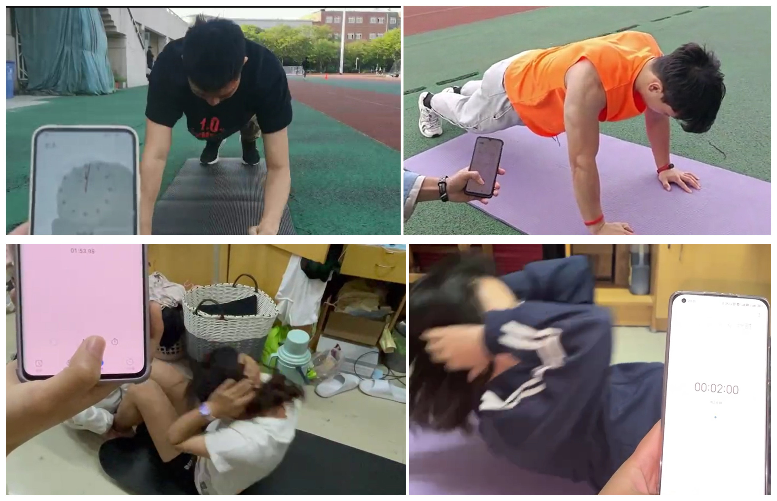 本次比赛由校团委、校体委主办,体育学院团委、校学生会承办,两校区各学院共计160名同学参加了此次比赛。本次比赛分为男生两分钟手肘交替,女生两分钟仰卧起坐两个项目。开赛以来,同学们积极踊跃报名参赛。本次体能挑战赛采取视频评审方式进行,同学们打卡拍摄视频,以规定时间内完成标准完整动作的次数进行排名。比赛期间,同学们按照活动要求参与打卡、规范录制视频,为赢得比赛而拼尽全力,努力做到最好最强,充分展现轻大学子的活力与激情。