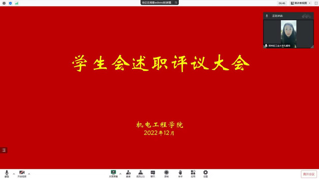 为进一步巩固学生会改革成果,强化学生会组织建设,切实增强学生会的政治性、先进性和群众性,更好地服务同学成长成才,机电工程学院于12月15日下午召开学生会线上述职评议会。学院团委书记孔馨雨、学生组织工作人员和学生代表参与本次评议会。