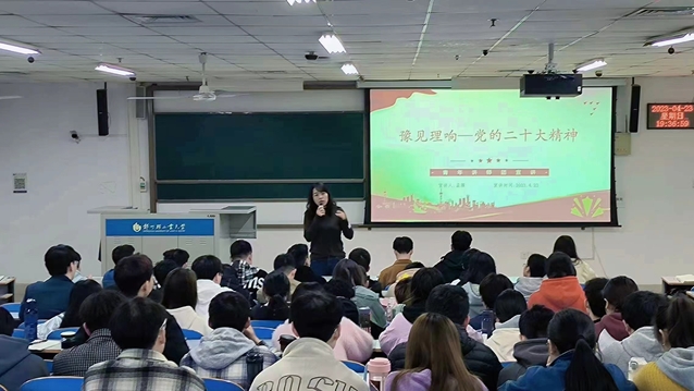 为深入学习贯彻习近平新时代中国特色社会主义思想和党的二十大精神,深刻领会习近平总书记关于青年工作的重要思想,持续深化“青年大学习”行动,进一步推动青年理论宣讲工作走深走实,4月25日,计算机与通信工程学院在系楼118开展了“豫见理响——党的二十大精神”主题宣讲会 ,本次活动由院团委书记孟牒主讲,学院各年级团学代表、院青马班学员参会。