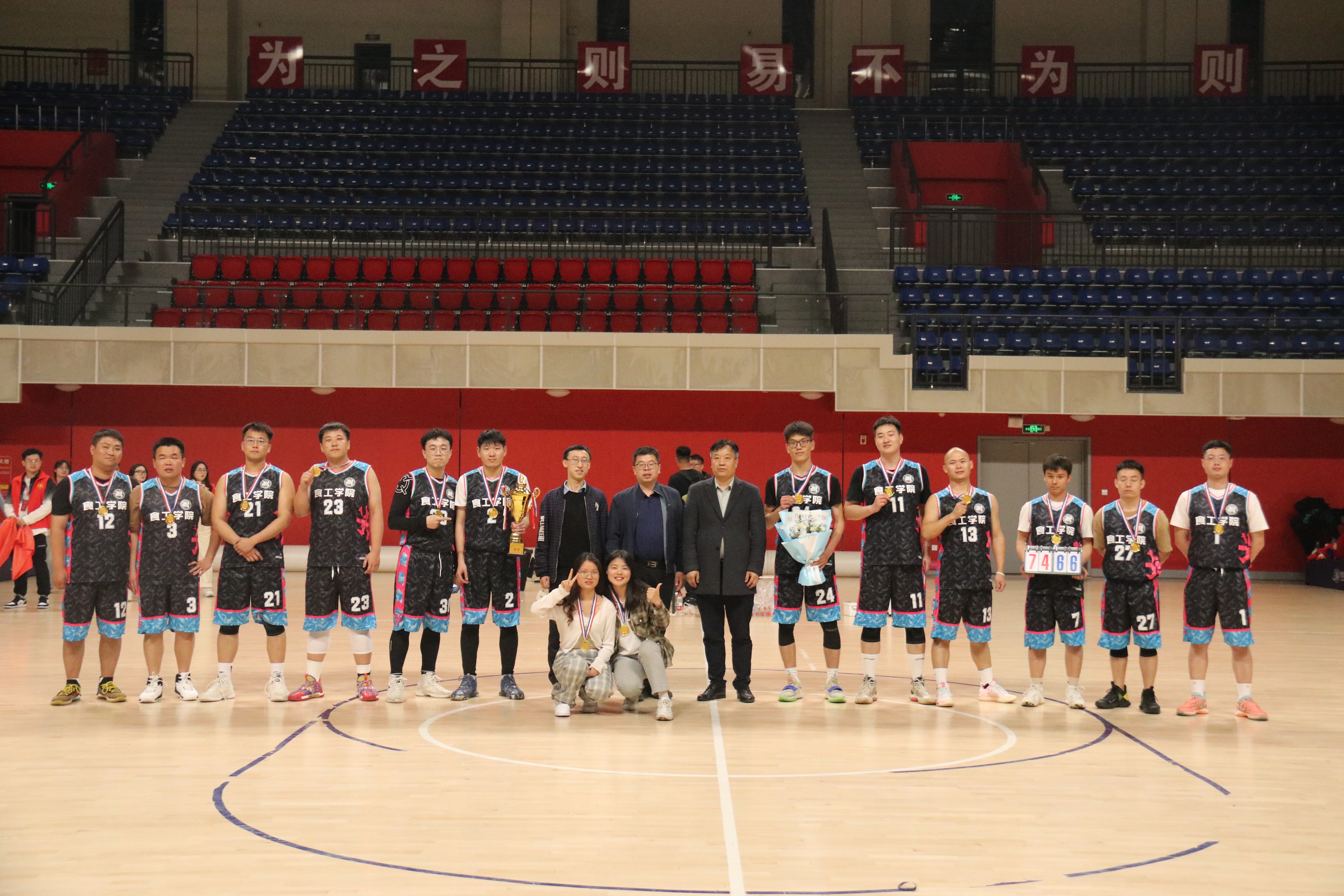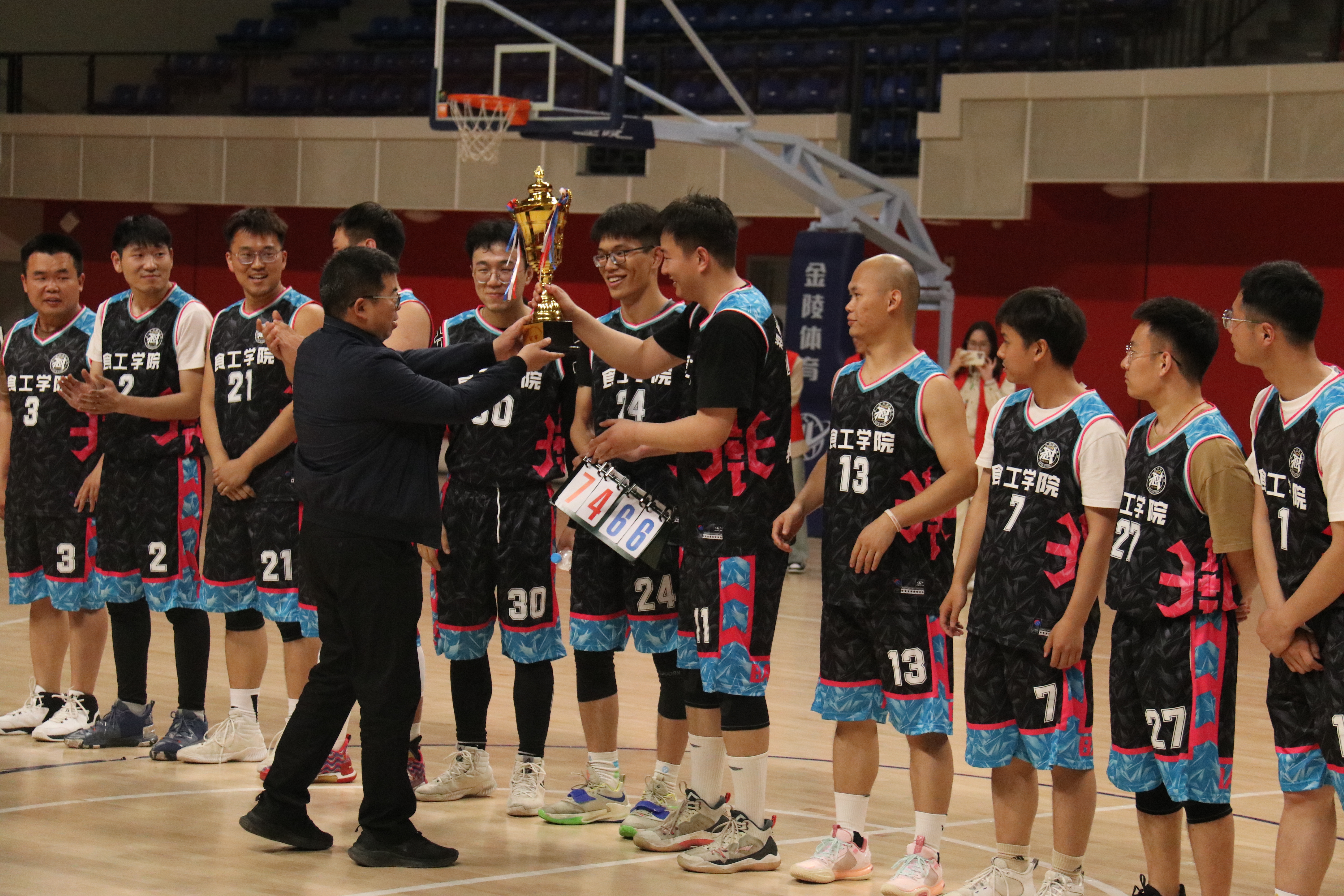 经过激烈的角逐,比赛于4月27日晚上在科学校区篮球馆落下帷幕,最终,食品与生物工程学院篮球队夺得冠军,计算机与通信工程学院夺得亚军,联合篮球队(马克思主义学院、政法学院和建筑环境工程学院)篮球队夺得季军,能源与动力工程学院获得优秀组织奖。
