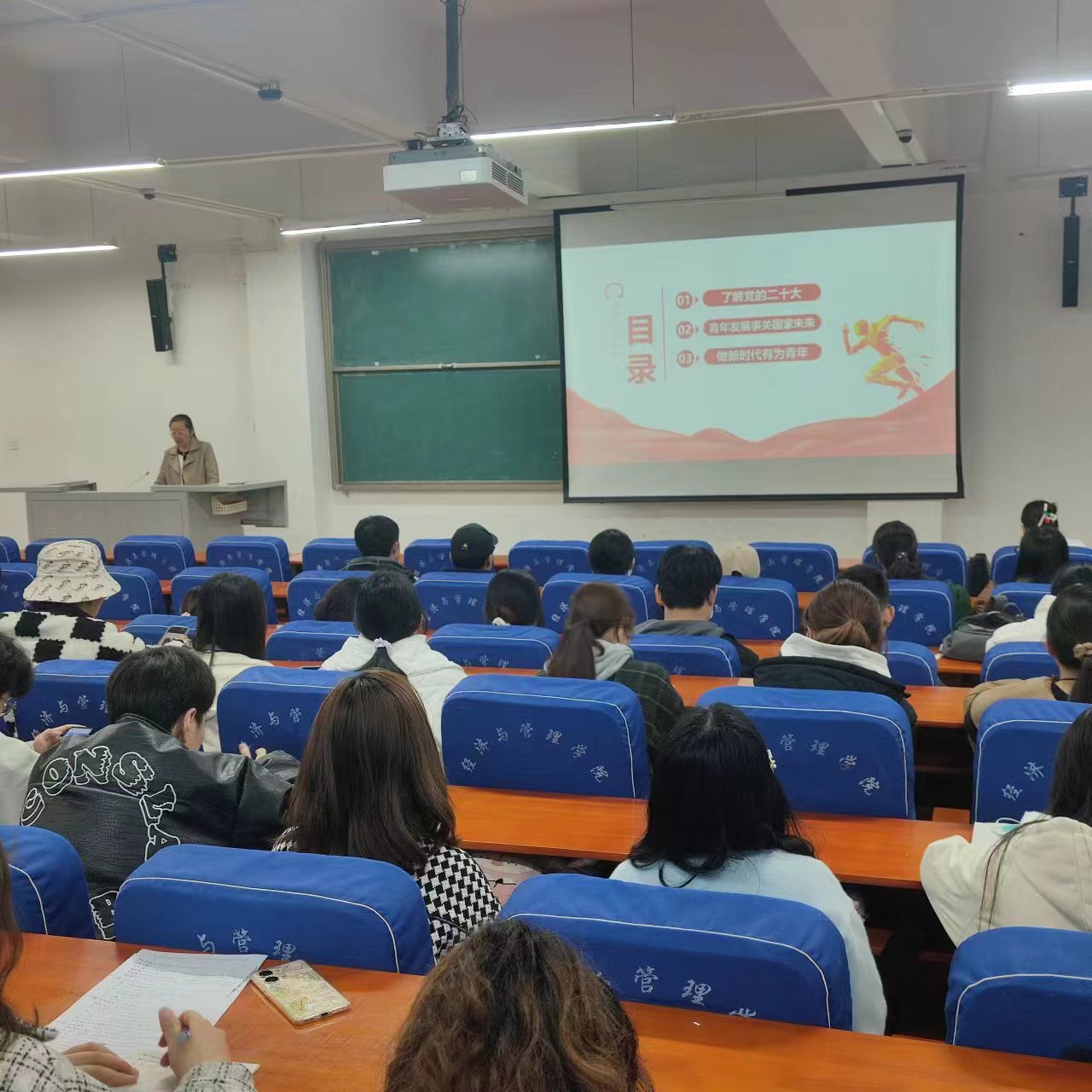 为深入贯彻习近平新时代中国特色社会主义思想,学习党的二十大精神,激励青年学生踔厉奋发、砥砺前行,4月27日,经济与管理学院在经管楼211开展“豫见理响——党的二十大精神”主题宣讲活动,本次宣讲由校青年讲师团成员、经济与管理学院团委书记姚少华老师主讲,学院青马班成员及团学骨干代表参加了本次活动。