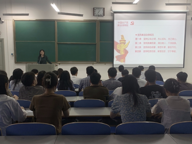 活动中,寇誉元老师带领同学们学习了习近平总书记在二十届中央纪委二次全会上的重要讲话精神,解读了《中国共产党廉洁自律准则》及《中国共产党纪律处分条例》,并对毕业生党员提出希望和要求。一是加强党性修养,锤炼高尚品质,明大德、守公德、严私德。二是严守纪律规矩,保持清正廉洁,知敬畏、存戒惧、守底线。三是牢记校训精神,勇于担当作为,廉洁修身,廉洁从业,廉洁齐家。她指出,大家要把严守政治纪律和政治规矩放在首位,在各自的岗位上克己奉公、建功立业,展现建工学子的良好精神风貌,回报母校的悉心培养。