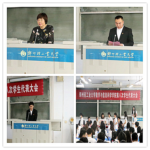 校学生会主席团周志奎同学致贺词,对大会的召开表示衷心的祝贺,对数学与信息科学学院学生会过去一年的工作表示肯定,并预祝此次学生代表大会成功召开,他表示学生会要做好学习引领,务求注重实效,积极为同学们服务,做好自身发展,勇于担当,勤奋学习,严于律己,将学生会的桥梁和纽带作用发挥好。