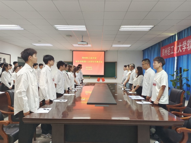 与会代表审议并通过了《郑州轻工业大学软件学院学生会选举办法(草案)》,表决通过了参加校学生代表大会代表的候选人,选举产生了新一届郑州轻工业大学软件学院学生会主席团成员。在圆满完成各项议程后,伴随着《中国共产主义青年团团歌》,大会顺利闭幕。