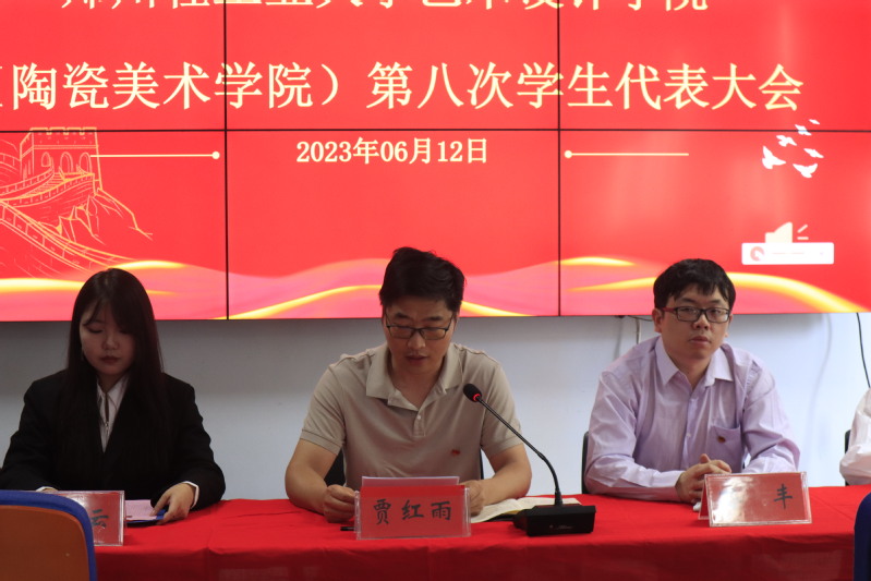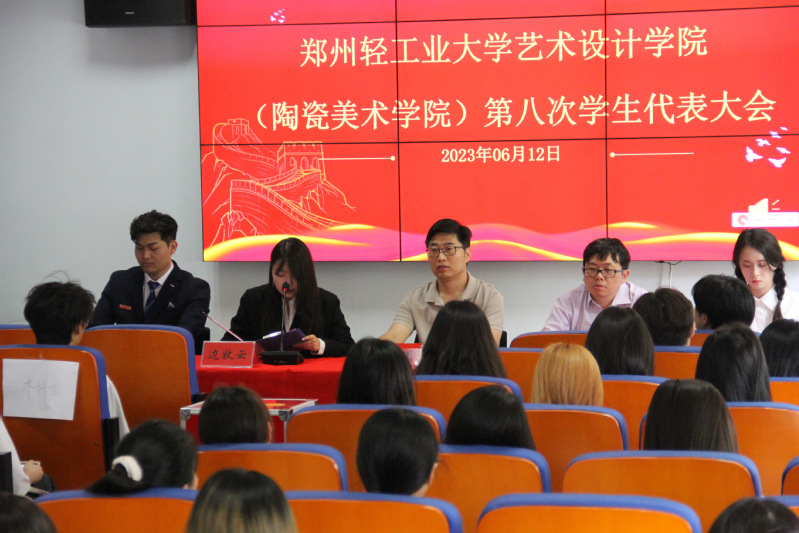 2023年6月12日中午,艺术设计学院(陶瓷美术学院)第八次学生代表大会在东风校区东四楼301隆重召开。学院党委副书记贾红雨老师、团委书记孙丰老师、校学生会主席团代表边牧云及全体学生代表等90余人出席会议。会议由艺术设计学院孙飞扬同学主持。