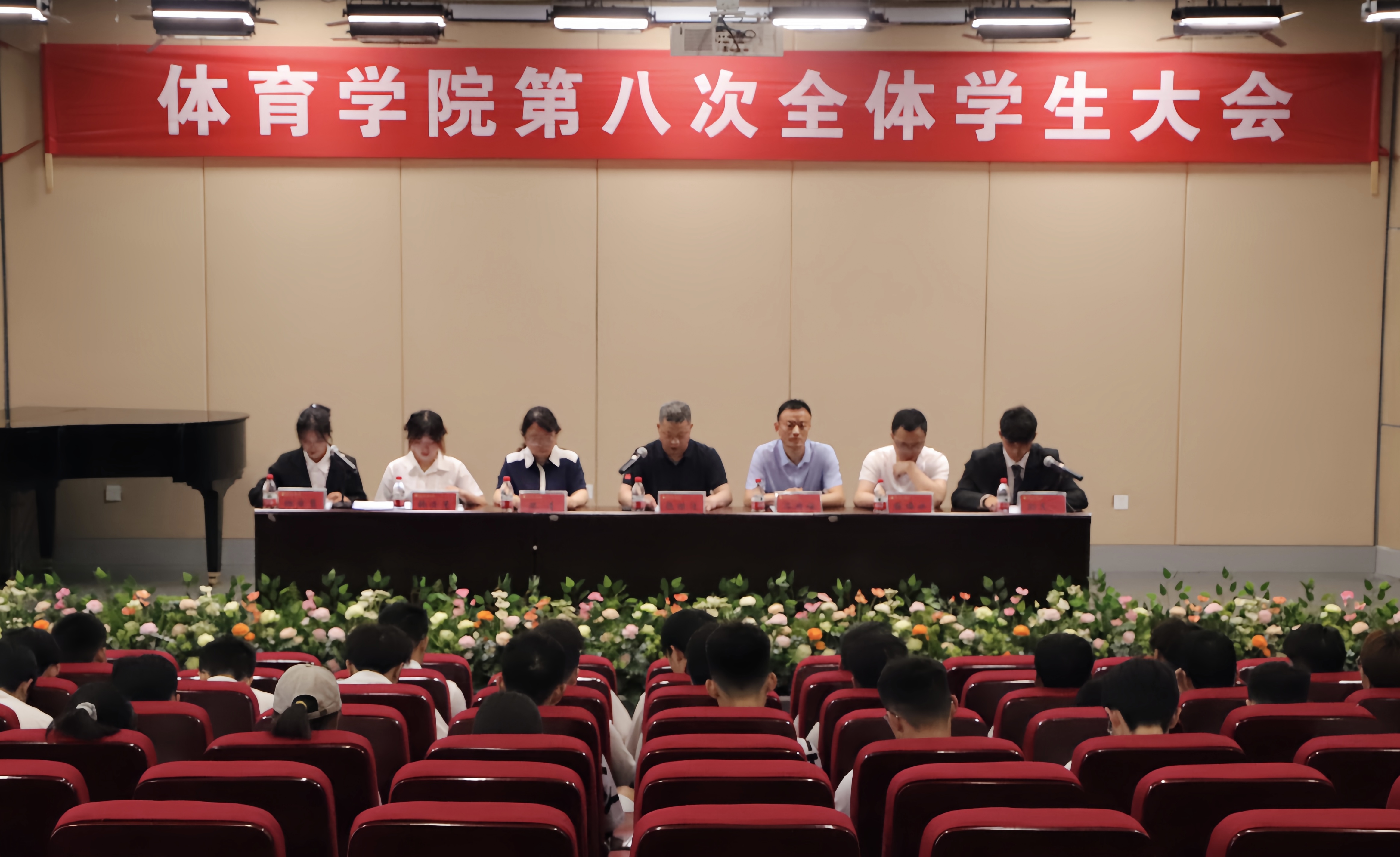 6月14日上午9:00,体育学院在科学校区音乐厅召开第八次全体学生大会。体育学院党总支书记张根清、院团委书记石庆福、院学工办副主任陈洁、院副科级组织员张峰升、校学生会工作人员韩佳慧及体育学院全体学生参加了此次大会。