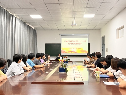 张老师以“不断开辟马克思主义中国化时代化新境界”为主题,强调习近平新时代中国特色社会主义思想开辟了马克思主义中国化时代化新境界,是当代中国马克思主义、二十一世纪马克思主义。《习近平著作选读》第一卷、第二卷集中反映了我们党推进马克思主义中国化时代化取得的重大理论创新成果,深刻展现了习近平新时代中国特色社会主义思想为丰富发展马克思主义作出的原创性贡献,为传承发展中华优秀传统文化作出的历史性贡献,为推动人类文明进步作出的世界性贡献。张老师希望青年学子认真学习研读,从理论与实践相统一、历史与现实相贯通、国内与国际相结合上,不断深化对习近平新时代中国特色社会主义思想开辟马克思主义中国化时代化新境界的理解和认识,踔厉奋发、勇毅前行,以更加强烈的历史主动精神把新时代中国特色社会主义事业推向前进。