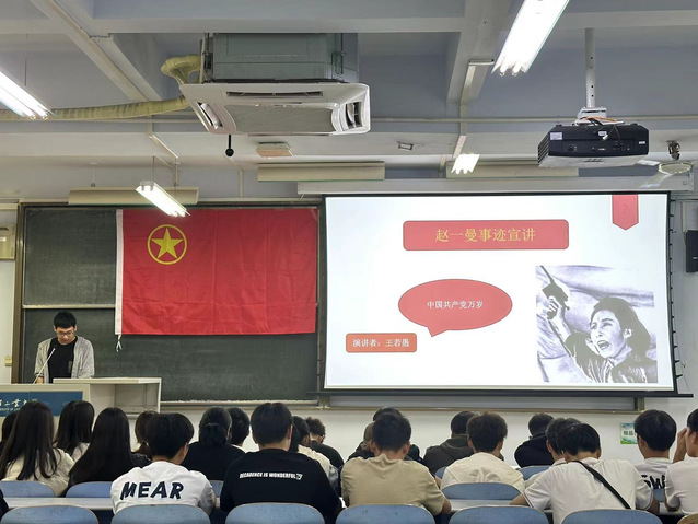 在团日活动开展的过程中,团支书讲述了红色故事,激励学生传承红色革命基因。团员观看视频,重温战争年代的峥嵘岁月,感受着革命先辈坚定的信仰,增强了民族自豪感,培养了爱国主义精神。随后,团支书通过PPT宣讲,介绍了爱国主义的内涵、意义和如何去爱国,使同学们更加深入地了解到爱国的深层含义,感受到中华传统文化的魅力,增强了文化自信,懂得如何去理性爱国。活动尾声,同学们爱国热情高涨,纷纷表示要继续传承和发扬党的优良传统,以更加积极的态度、更加务实的作风,肩负起时代赋予的光荣使命,为中华民族的伟大复兴任务添砖加瓦。
