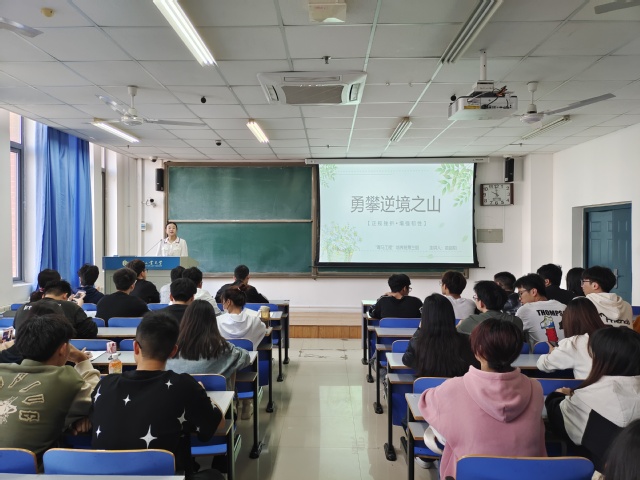 课上,苗赵阳从认识逆商、发现逆商、运用逆商和培养逆商四部分展开。首先讲解了逆商的意义,鼓励同学们把逆境转为顺境,把压力变为动力,并就大学生常见的挫折进行举例。随后,从控制、归属、延伸、忍耐四大要素分析了高逆商的表现。接着,通过“最美轻大人提名奖”获得者付朝鲜同学的榜样故事引导同学们正视挫折,学会与逆境友好相处,做到以平和、积极、乐观的心态面对逆境,在逆境中不断成长。最后,苗赵阳详细讲解了如何提升逆商,包括建立适度的期望水平、提高对挫折的认知能力、合理的自我归因以及做好挫折准备。