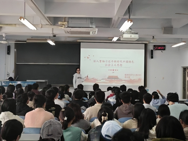 各年级团支书分别围绕思想核心、坚强核心、强国复兴、挺膺担当四个专题对同学们进行思想教育、感悟分享、践行真知等丰富活动。在思想核心专题中,20级团支书们就习近平新时代中国特色社会主义思想展开详细阐释,加深了同学们对其内涵思想的理解和感悟;在坚强核心专题中,21级各团支书把习近平新时代中国特色社会主义思想与中国共产党的精神谱系内涵相结合为同学们讲述了我国现代化取得的一系列成就及成就背后埋头奋斗的科研人员和一线工人,展现了中国共产党人困难压不倒、苦难击不穿的精神风范和意志品格,同学们直观感受到了党前进道路上的艰辛与学习习近平新时代中国特色社会主义思想的重要性;在强国复兴和挺膺担当两个专题中,通过22、23级团支书们的精彩演讲,同学们自发上台发表了自己对于习近平新时代中国特色社会主义思想的理解,“习近平新时代中国特色社会主义思想是终极的理论成就”、“习近平新时代中国特色社会主义思想实现了马克思主义中国化新的飞跃”。同学们纷纷表示,要把习近平新时代中国特色社会主义思想贯通到之后的学习生活中,坚定理想信念,发扬奋斗精神和吃苦精神,更好地担负起实现中华民族伟大复兴的历史重任。