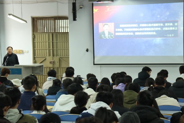 课上,廉琼老师以《星辰大海的征途》为题,由“网课天花板”天宫课堂,引出“中国为什么要建自己的空间站?”“中国为什么能建成自己的空间站?”两个问题,生动阐述了中国航天事业的发展历程、现阶段取得的成就、党的领导和国家制度在推动科技创新发展中的关键作用以及青年科技工作者的巨大贡献。她勉励广大团学干部积极学习践行“特别能吃苦、特别能战斗、特别能攻关、特别能奉献”的航天精神,在专业学习和学生工作中保持昂扬向上的奋斗姿态,在担当中历练,在尽责中成长。团学干部代表、学院学生组织执行主席宋耀辉领学了《关于学联学生会工作人员改进作风服务同学的若干规定》和相关学生组织工作管理文件。