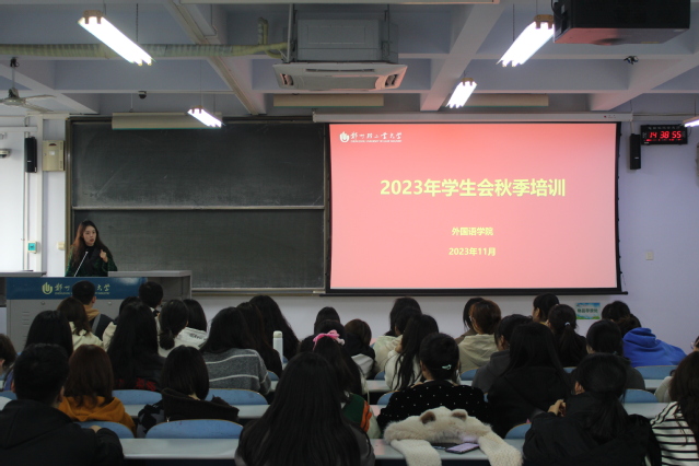 为进一步加强学生会工作人员作风建设,提高责任担当意识,11月13日中午,外国语学院在教三楼604教室召开2023年秋季学期学生会工作人员培训会。本次会议由学院团委书记张文卿老师主持,学院学生会全体成员参加。