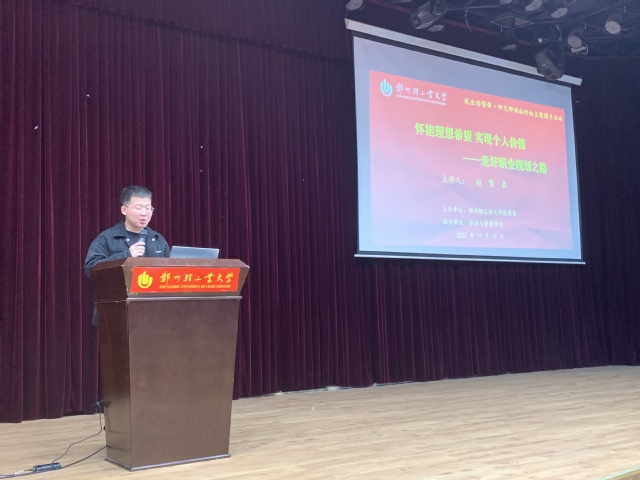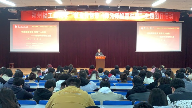 为深入推进共青团促进大学生就业行动,引导青年学生树立正确的就业观,了解就业形势,做好职业规划,提高自身就业的竞争优势,经济与管理学院于11月17日在科学校区学生活动中心208教室举办郑州轻工业大学“就业传帮带·师兄师姐面对面”主题示范团日活动。本次团日活动邀请了经济与管理学院优秀校友——现任河南省叶县保安镇杨令庄村支部助理的赵繁森担任主讲嘉宾,各学院学生代表500余人参加了本次主题团日活动。