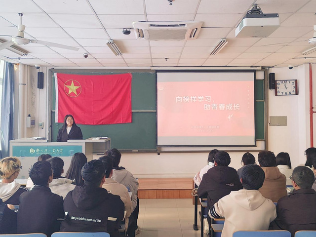 活动伊始,各团支书组织大家齐唱团歌,每位同学全心投入,回顾入团初心。随后,各团支书向同学们列举了几位著名英雄人物和身边的榜样,带领同学们学习他们的事迹精神。各学生代表也分别向大家介绍了自己身边的榜样,鼓励大家向榜样学习,砥砺拼搏、奋力前行,用自己的实际行动贡献国家、服务社会。最后,同学们纷纷表示,作为新时代青年,要肩负起时代赋予的重任,在奋斗中释放青春激情、追逐青春理想,以青春之我、奋斗之我,为祖国的建设添砖加瓦。