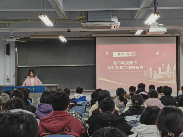 各团支部围绕活动主题,积极筹备并开展团课,团课围绕“毫不动摇坚持党对青年工作的领导”“新时代的中国青年要以实现中华民族伟大复兴为己任”“共青团要始终成为紧跟党走在时代前列的先进组织”等多角度,强调党为未来青年工作的进行与发展做出规划,具体阐释了党在青年工作中的重要地位;通过习近平总书记《论党的青年工作》一书强调青年是国家的未来,民族的希望。交流讨论环节,同学们认真思考,积极讨论,一致认为“自古英雄出少年”。同学们纷纷表示,作为一名新青年,不仅要牢记习近平总书记的谆谆教导,紧跟党的步伐,还要不断完善自己,将个人的信念与力量融入党,汇聚成民族复兴的时代洪流。