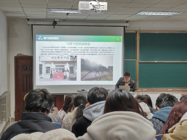 为进一步推动学生会组织改革,提升学生会成员的服务能力和水平,2023年12月21日下午,国际教育学院在教二楼229举行了2023-2024年度第一学期学生会述职评议大会。学院团委书记焦云娜、校学生会成员、学院学生会全体成员以及各班学生代表参加了此次会议。