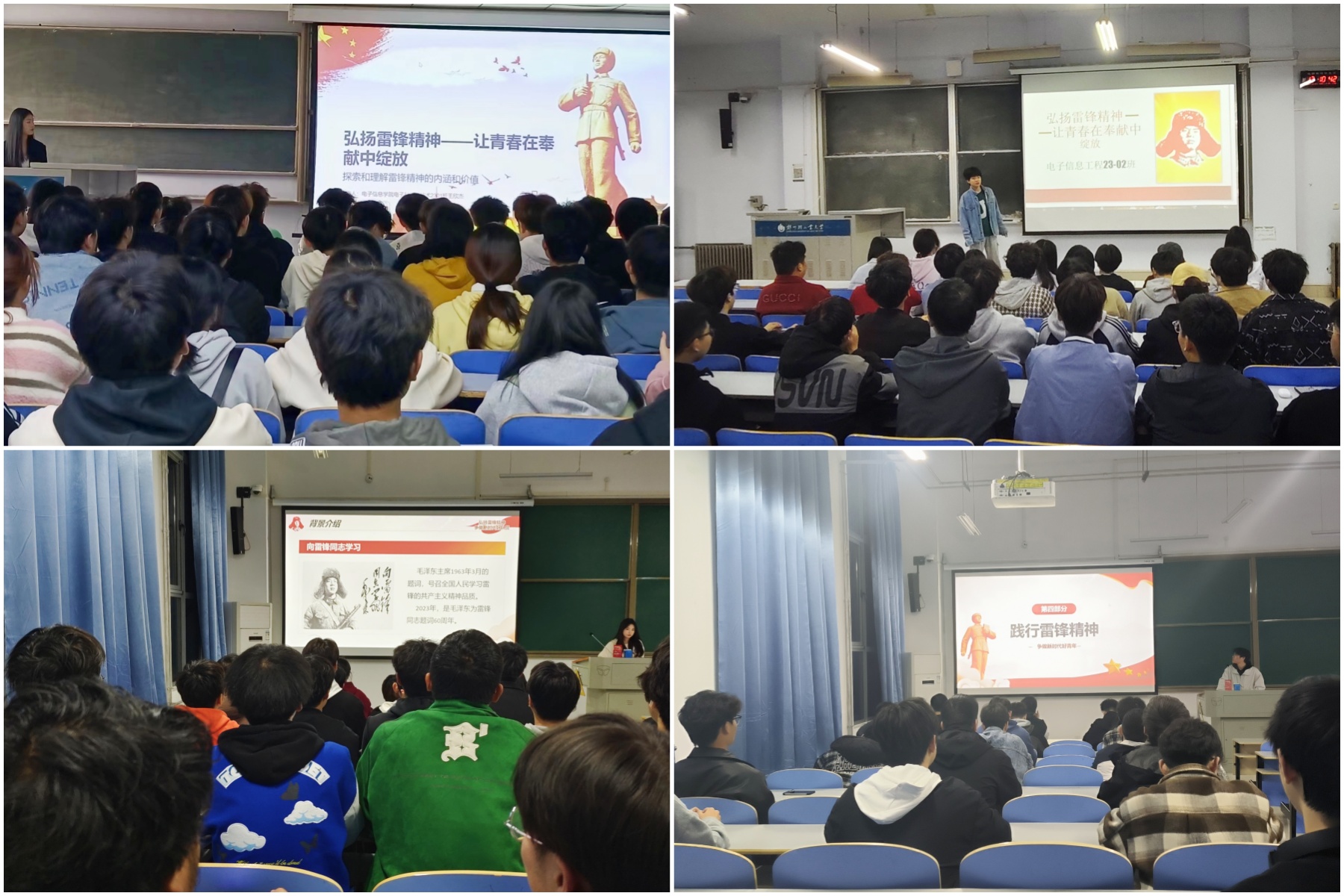 为引导广大青年团员充分发挥先锋模范作用,争做新时代雷锋精神的传承者和践行者,3月15日至25日期间,电子信息学院各基层团支部开展了“弘扬雷锋精神——让青春在奉献中绽放”主题团日活动。