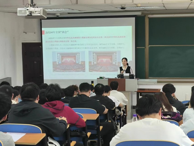 宣讲会上,焦云娜老师深入浅出的传达了2024年全国两会的基本概况和政府工作报告的要点。进而,围绕两会重点、热点和亮点进行了详细的解读,使同学们对两会精神有了更深刻的认知。讲解过程中,焦云娜老师还带领同学们学习了“新质生产力”、“新三样”、“ 投资中国”等两会热词,进一步激发了同学们勤奋学习、创新创造的热情。