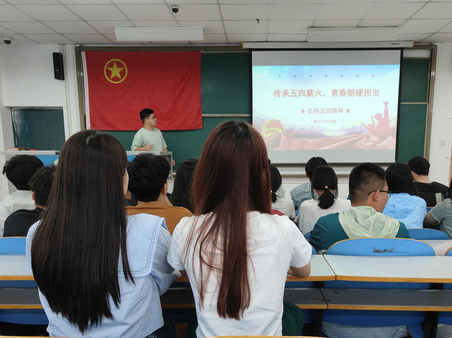 活动中,由团支书带领全班同学重温入团誓词,增强政治觉悟和组织归属感。接着,同学们共同观看了“五四运动”的相关影片,再现了当年青年学生为争取民族独立、国家富强而英勇奋斗的场景。同学们通过视频深刻地感受到了那个时代的青年们所肩负的责任和使命,深入体悟到了“五四”运动的深刻精神内涵及其对中国近代史的深远影响,进一步激励广大团员青年明确自身时代使命,传承和弘扬“五四精神”。随后,团支书通过素质拓展活动展现青年朝气蓬勃、昂扬向上的青春风采,鼓励同学们向青年典型看齐,汲取榜样力量,争做时代新人,以实际行动传承“五四精神”。同学们纷纷表示自身应不断发扬“五四精神”,挺起青春的脊梁,勇于担当时代使命,积极发展自我、投身国家建设。