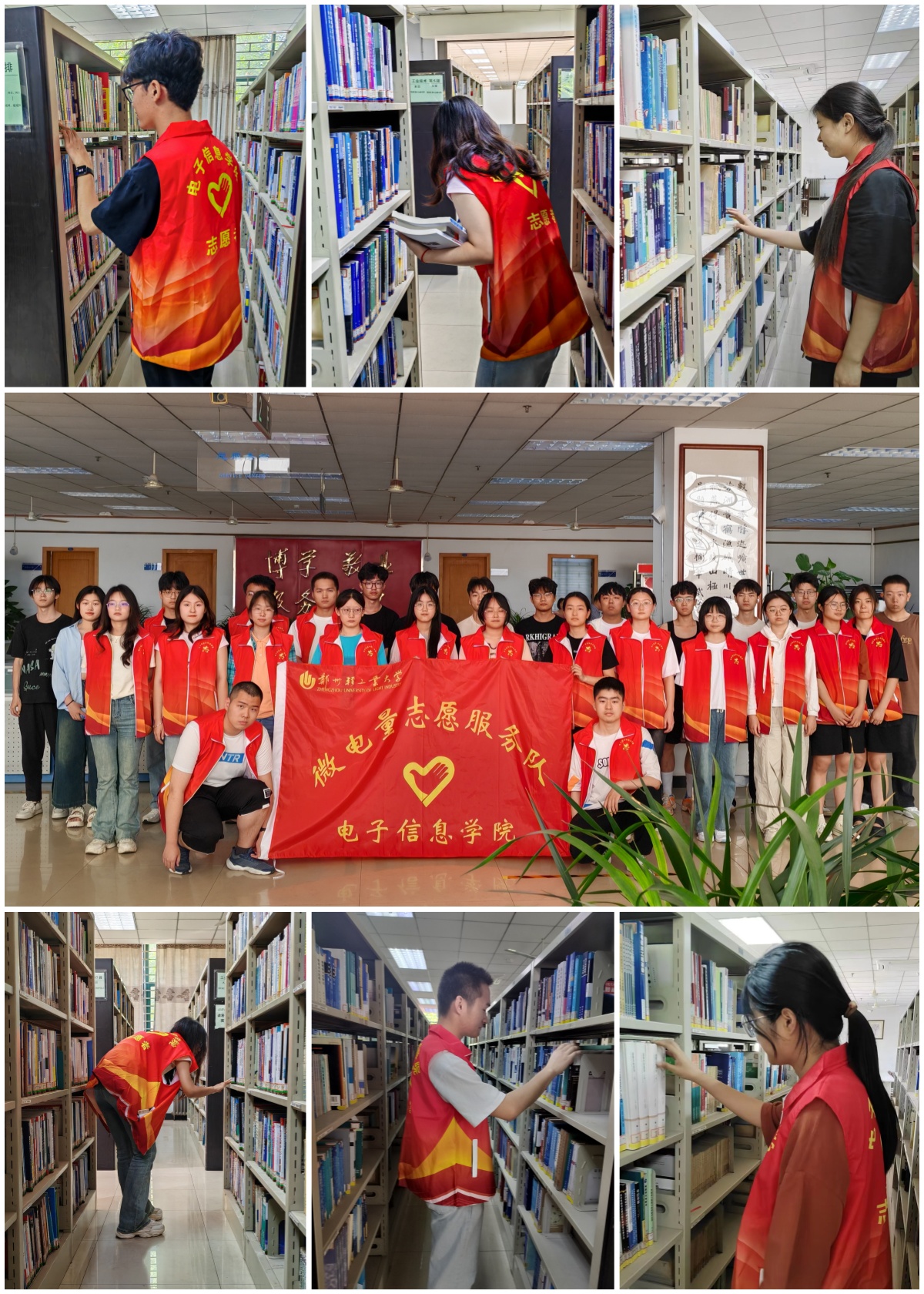 为了弘扬雷锋精神,充分发挥劳动育人功能。5月9日下午两点半,电子信息学院“微电量”志愿服务队在东风校区图书馆开展“书香洁净,劳动有我”志愿服务活动,2023级志愿者们参加了此次活动。