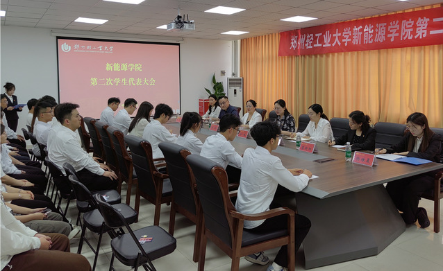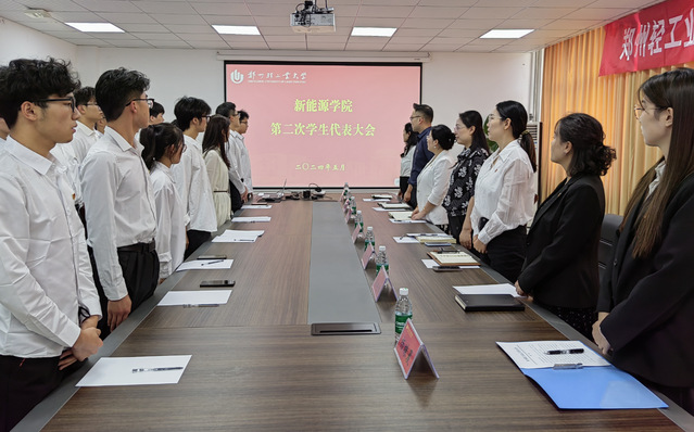 随后,杨姝晨致贺词。她肯定了学院学生会上一年的工作,并对今后工作提出建议,表达了加强校院两级学生会沟通和交流的希冀。会上,代表审议并通过了《郑州轻工业大学新能源学院学生会工作报告》《郑州轻工业大学新能源学院学生会组织章程》以及《郑州轻工业大学新能源学院学生代表大会换届选举办法(草案)》,表决通过了出席郑州轻工业大学学生代表大会正式代表建议名单,选举并产生郑州轻工业大学新能源学院新二届学生会主席团成员。大会在激昂的中国共产主义青年团团歌中闭幕。