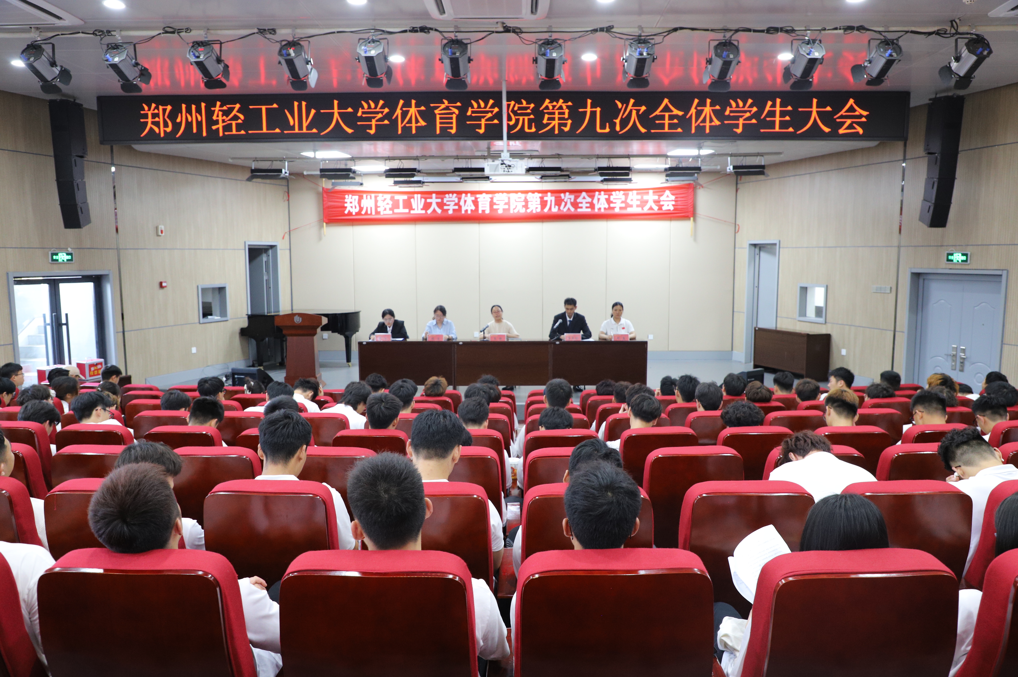 5月21日,郑州轻工业大学体育学院第九次全体学生大会在体育馆音乐厅隆重召开。体育学院党总支副书记王静、团委副书记李昊轩、学工办副主任陈洁、辅导员郝鑫以及全体学生参加了此次大会,大会由李昊轩主持。
