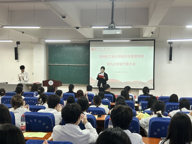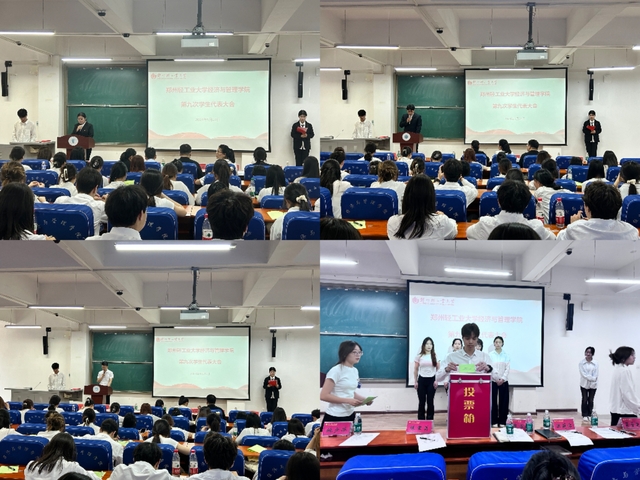 随后,与会代表共同审议并通过了《郑州轻工业大学经济与管理学院学生会章程》《郑州轻工业大学经济与管理学院研究生会章程》以及《郑州轻工业大学经济与管理学院学生代表大会换届选举办法》,表决通过了出席校学生代表大会代表的候选人,选举产生了新一届经济与管理学院学生会、研究生会主席团成员。在圆满完成各项议程后,伴随着《国际歌》的响起,第九次学生代表大会顺利闭幕。