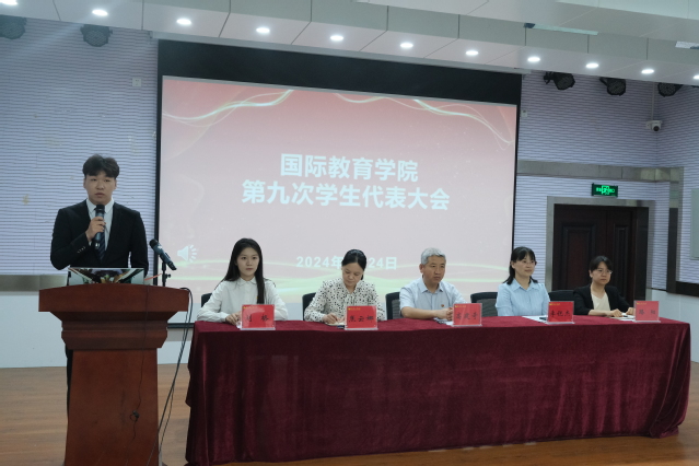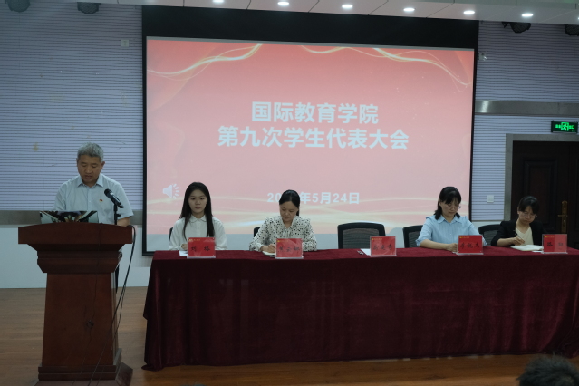 5月24日下午,国际教育学院在教二楼报告厅隆重召开第九次学生代表大会。学院党委书记高建奇、党委副书记李锐杰、团委书记焦云娜、学工办主任路阳、校学生会主席团成员刘格以及学院全体学生代表参加了此次大会。