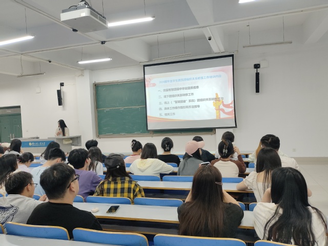 本次培训会由学院团员中心的成员主持。会议伊始,成员们首先向毕业班团支书们强调了毕业生团学工作培训的重要性,希望各班级团支书起到带头作用,认真学习团校培训知识,传达并且要求好本支部团员规范完成要求,做好毕业生团员教育和团员信息审核工作。接着,团员中心的同学通过案例分析向2024 届毕业班团支书们介绍了团组织关系转接的具体流程和要求,详细说明了转接过程中需要填写的表格以及注意事项,特别是对智慧团建系统的使用方法和介绍信的开具流程,进行了专门的介绍。同时,她结合往年转接过程中遇到的常见问题,为同学们提供了实用的指导和建议,切实保障团组织关系转接工作的高质量开展。在培训会即将结束之际,团员中心成员对即将毕业的团员青年们表达了美好的祝愿,希望经管学子在未来的日子里,能够继续保持对团组织的热爱和关注,积极投身社会建设和发展,为实现中华民族伟大复兴的中国梦贡献自己的力量。