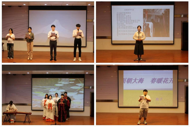 为深入学习贯彻党的二十大精神,大力弘扬中华优秀传统文化,坚定文化自信,5月29日,由校团委主办、外国语学院承办的科技文化艺术节系列活动之第十二届“经典照亮人生”诗词诵读大赛决赛在教二楼报告厅成功举办。
