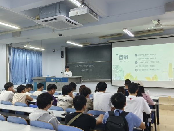 活动伊始,各班团支书领学了习近平总书记关于“绿水青山就是金山银山”的经典论断,引导广大团员和青年学生深入学习贯彻总书记的生态文明思想。随后,各位团支书通过ppt和视频资料向同学们展示了生态文明对于人类发展的重要影响,广大学生纷纷发表分享自己的感受和想法。大家表示,作为新时代青年要跟党走听党话,我们应积极投身美丽中国建设,以青春行动助力全面推进人与自然和谐共生的现代化。