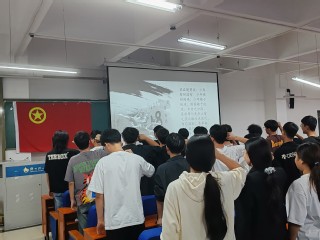 接着,团支部书记带领大家从“九一八”事变开始回顾中华儿女的抗战史、屈辱史,将先辈长达14年的辛酸史娓娓道来,提醒同学们勿失初心、勿忘国史,时刻谨记警钟长鸣,鼓励大家做民族脊梁,担民族大任!此后,借梁启超先生《少年中国说》激励青年学子不忘初心、坚守理想、担当使命、英勇斗争。