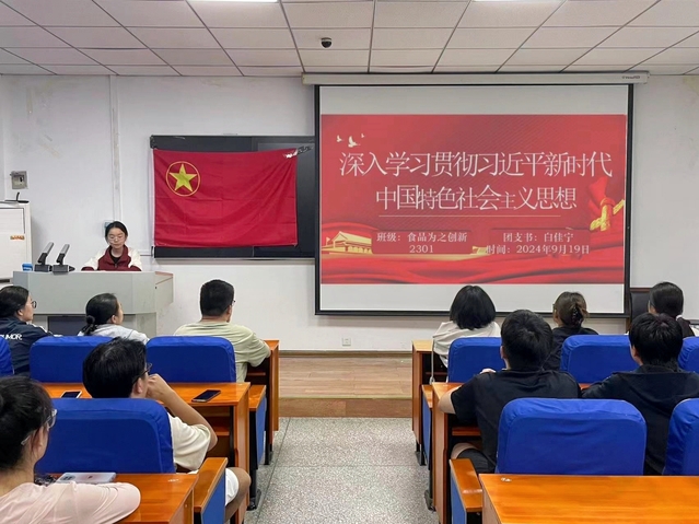 为深入学习贯彻习近平新时代中国特色社会主义思想,增强青年学生的政治意识和思想觉悟,2024年9月中下旬,食品与生物工程学院组织各团支部开展“深入学习贯彻习近平新时代中国特色社会主义思想”主题团日活动。