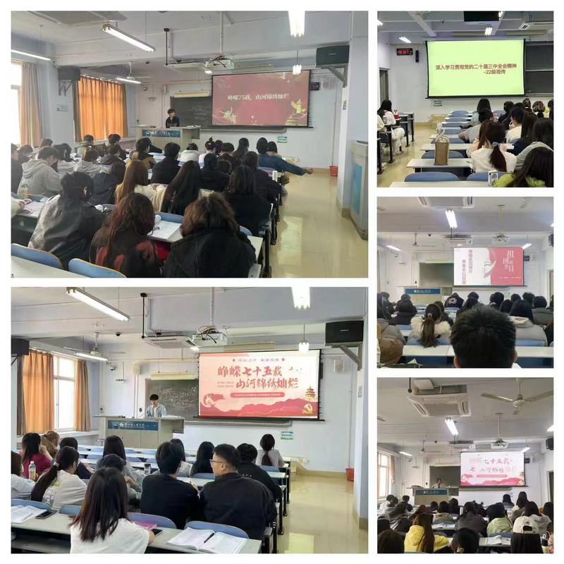 活动伊始,各班团支书带领同学们通过生动的讲解和观看影片资料一起回望了过去75年来的奋进强国之路的历程,起伏动荡的故事,波澜壮阔的历史深深打动了同学们。回望过去的七十五年,新中国从风雨摇曳中走来,历经沧桑巨变,铸就了举世瞩目的辉煌成就。同学们在学习后踊跃发言,发表自己的看法。他们表示立志要在新时代的征程上,为社会发展和改革推进贡献自己的力量,用青年书写属于中华民族的更加辉煌灿烂的篇章。