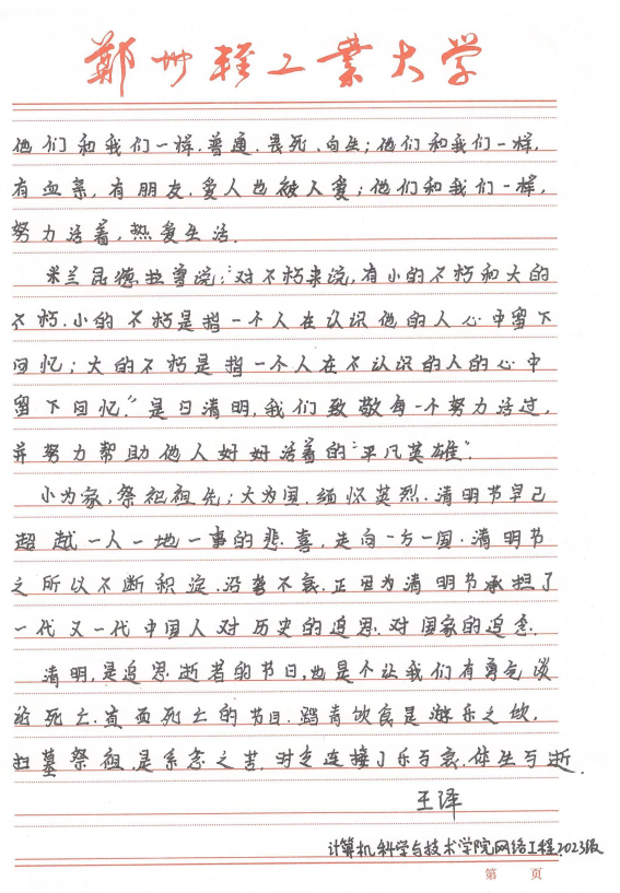 为弘扬英烈事迹,传承英烈精神,使同学们铭记与践行新时代青年的责任与担当。4月3日,计算机科学与技术学院组织开展“清明祭英烈,共铸中华魂”作品征集活动。