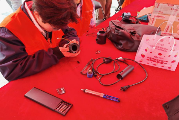 活动现场,志愿服务队设置了家电维修区和安全用电科普区两大功能区域,志愿者们身着统一志愿服装,以饱满的热情投入到服务工作中。在家电维修区,志愿者们严格遵循“先检测、后诊断、再维修”的流程,运用万用表、螺丝刀、电烙铁等专业工具,对每一件故障家电进行细致排查。针对台灯接触不良、鼠标按键失灵、键盘串键、电脑系统崩溃等常见问题,同学们熟练拆解、更换零件、焊接线路,耐心细致地完成维修工作。对于无法当场修复的小电器,志愿者们详细记录所有者信息和故障情况,告知后续处理方案。活动期间,维修区共接收各类故障家电30余件,成功修复25件,修复率达80%以上,切实为大家解决了困扰。在安全用电科普区,志愿者们向同学们普及安全用电知识,重点针对老化插座、电线等电气设备的危害性进行了详细科普。结合真实案例,志愿者讲解了老化电气设备易引发短路、漏电、火灾等安全隐患的原理,以及如何通过观察外观、定期检测等方式识别老化电气设备等,让安全用电理念深入人心。
