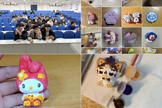 10月22日下午,移动软件2024级4班团支部在三教楼109开展“生活调色盘:绘制你的多巴胺人生”心理活动。活动分为石膏娃娃制作、主题心理沙龙、线上生活分享三大板块。石膏娃娃制作区,同学们围坐创作,借色彩抒发心境,彼此交流技巧,陌生同学逐渐熟络起来。心理沙龙上,主持人刘孜晗播放“困惑征集”语音,大家分享焦虑,交流解压办法,同学晒日常获得了大量互动。活动尾声,同学围圈分享感受,纷纷表示找到了情绪出口。