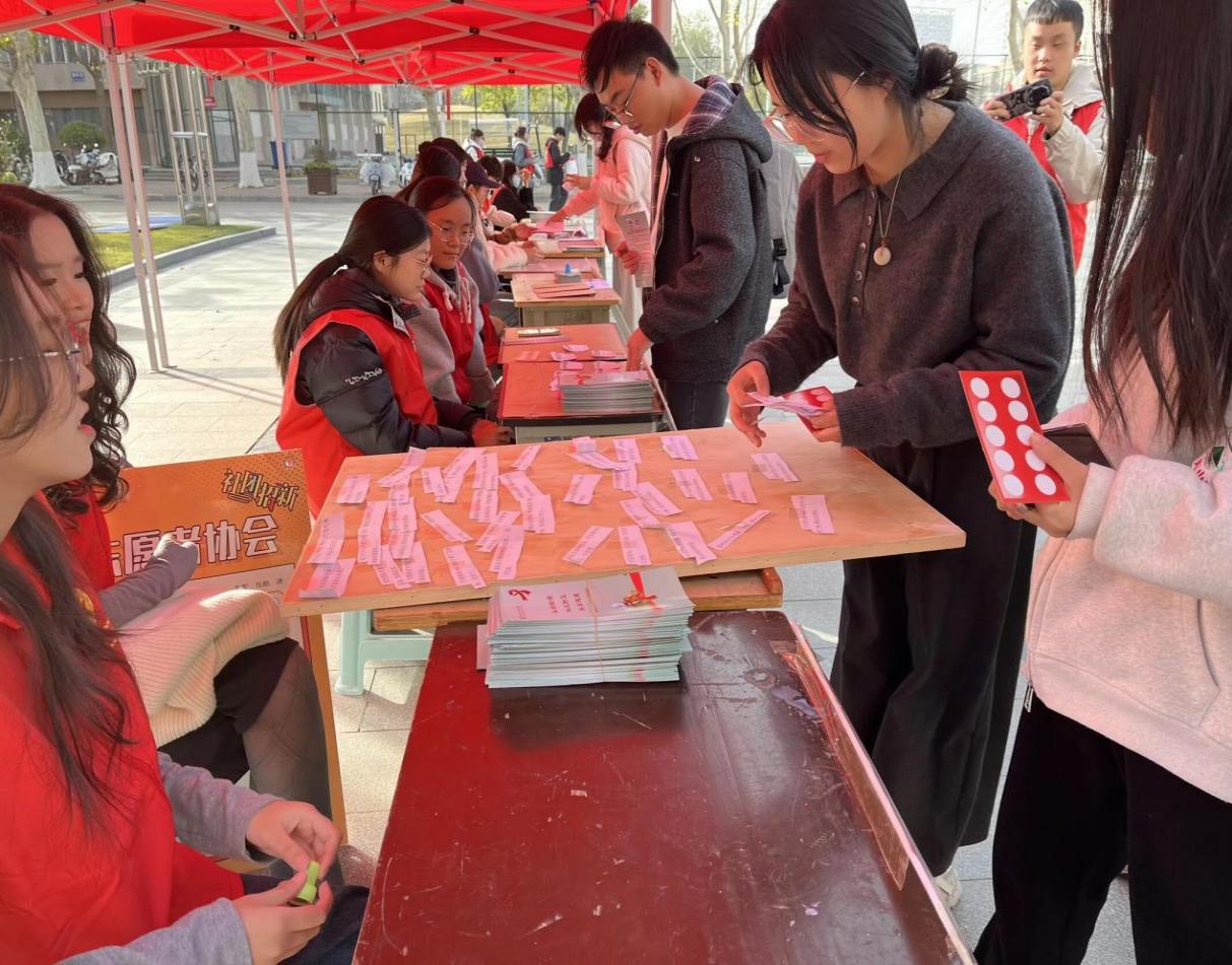 为了普及科学防艾知识,提升自我保护能力,11月27日下午,东风校区青年志愿者协会在东风校区图书馆前举办“世界艾滋病日”知艾防艾主题活动。青年志愿者协会部分成员以及300余名师生积极参与,校团委、校医院相关老师莅临指导,共同为普及防艾知识、消除社会歧视搭建起互动交流的平台。
